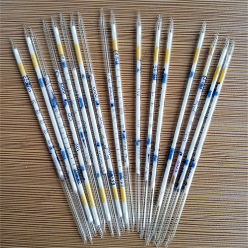 氣體檢測管外殼材質(zhì)玻璃管,內(nèi)裝一定載體和吸附劑,氣體通過時發(fā)生變色反應,由白色變成黃綠色,變色長度與二氧化氮氣體的濃度成正比,比長定量,而濃度標尺一般都直接印在檢測管上,因此可以直接從檢測管上的標尺讀取被測氣樣中氣體的濃度。檢測管以其快速、直觀、經(jīng)濟適用、安全可靠、操作簡單,隨時隨地都可檢測等優(yōu)點,廣泛用于環(huán)保、化工、煤炭、石油等多領(lǐng)域。